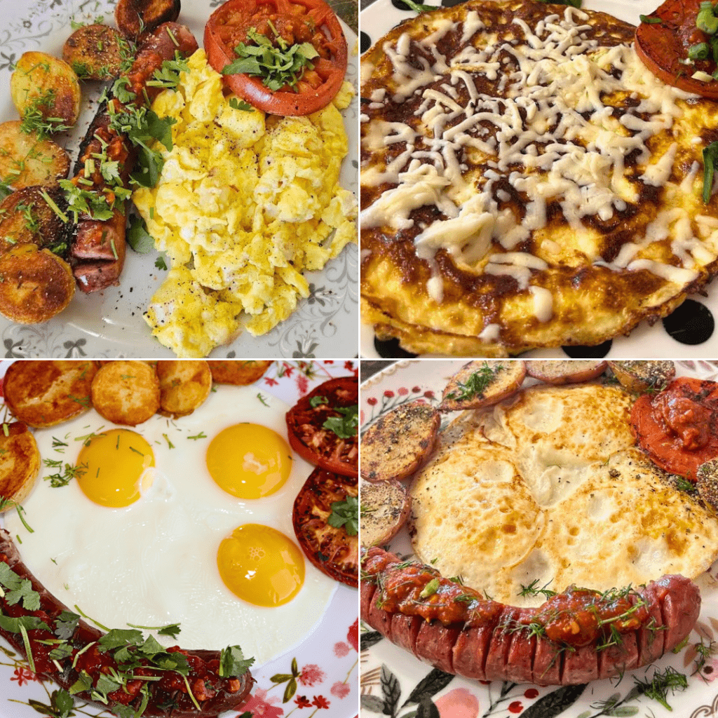 • Egg Breakfast – 3 Eggs with Bacon or Polish Sausage, Potatoes & Tomato